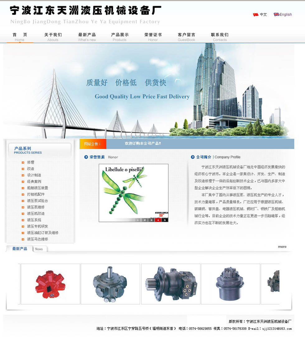 寧波江東天洲液壓機械設備廠地處中國經濟發(fā)展最快的經濟核心寧波市。本企業(yè)是一家集設計、開發(fā)、生產、制造及改造修理于一體的后起創(chuàng)新技術企業(yè),已與國內多家大中型...